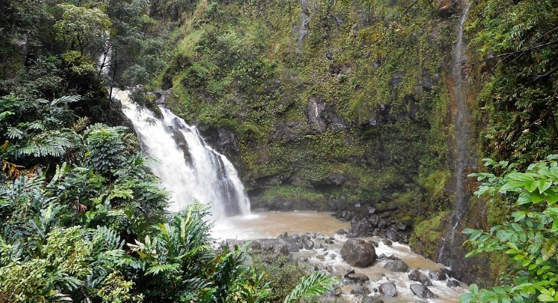 This lesser-known Maui waterfall looks calm from above, but the pool below can conceal strong currents. Access routes cross private land, so hiking there is illegal without permission. Several serious accidents have occurred when water levels rose suddenly after upstream rain.
