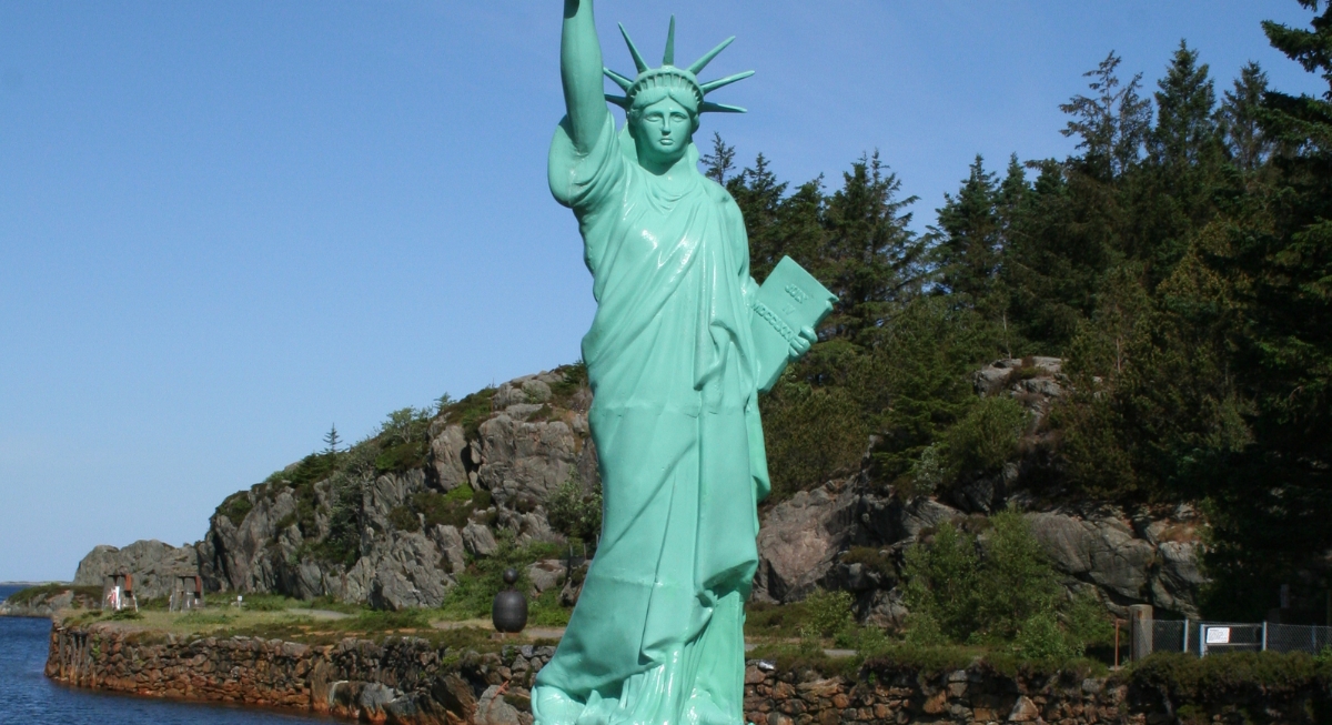 There’s a version of the Statue of Liberty beside a Norwegian fjord. This replica is near the copper mine that supplied material for the original statue in New York. The mine operated until 1972 and played a direct role in the monument’s creation. Its placement connects a global symbol back to its source.