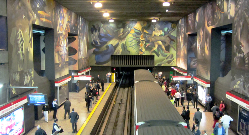 Santiago Metro fares often come in at $2 or less, and Universidad de Chile makes that feel ridiculous in the best way possible. Mario Toral’s mural, “Memoria Visual de una Nación,” spanning approximately 1,200 square meters, covers the walls. Look closely, and you’ll spot references to the Spanish conquest, political upheaval, and modern life, all painted at a scale that feels cinematic. People stop mid-stride to stare, and why not?
