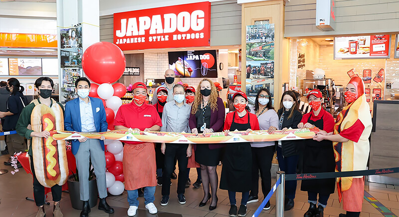 Japadog turns a simple hot dog into something completely its own. The standout is the Kurobuta Terimayo, a pork sausage topped with teriyaki sauce, seaweed, and Japanese mayo. At the YVR location, you’ll find the same street food spirit tucked into a small corner between terminals.