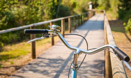 In northeastern Belgium, inside the province of Limburg, a cycling path cuts directly through a lake in Bokrijk, part of the...