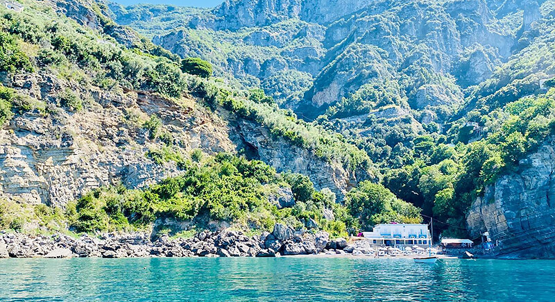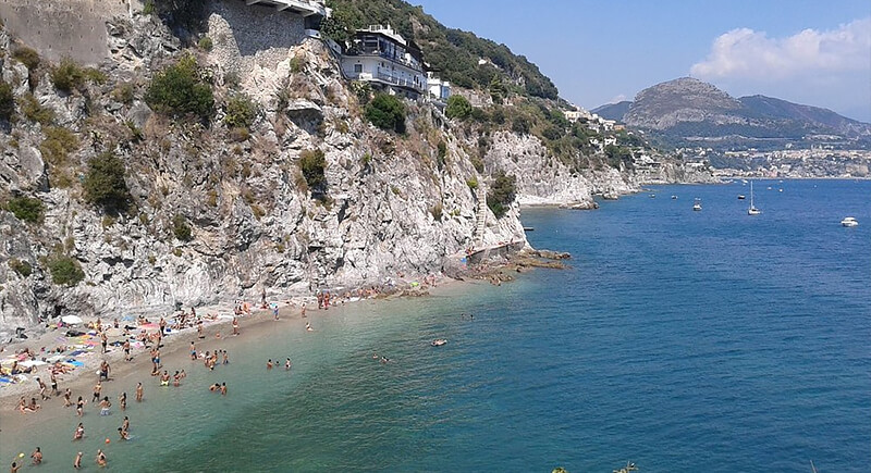 This tiny beach is hidden between Cetara and Erchie. You have to park in Erchie and walk along the road before climbing down a rocky path. There are no signs, no chairs, and no places to buy food or drinks, so you must bring everything with you. The water is clear and calm, and tall cliffs keep part of the beach shaded in the morning.
