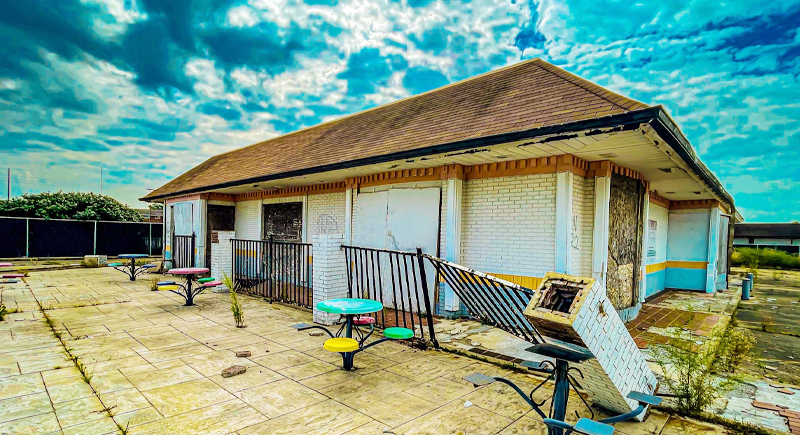 This former McDonald’s in Piqua shut down in the mid-2000s after a newer branch opened nearby. The building remains intact, with outdoor seating still painted in bright primary colors. Though unused, the space hasn’t been repurposed or demolished, and has left behind a fenced-in snapshot of fast food architecture from a not-too-distant past.