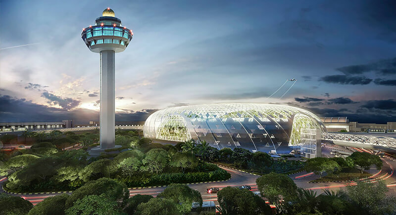 Jewel Changi Airport in Singapore connects terminals 1, 2, and 3 through a massive glass structure filled with gardens, shops, and public spaces for travelers and locals alike. It reshaped the idea of what an airport can be—part transit hub, part attraction. The project cost about $1.3 billion.