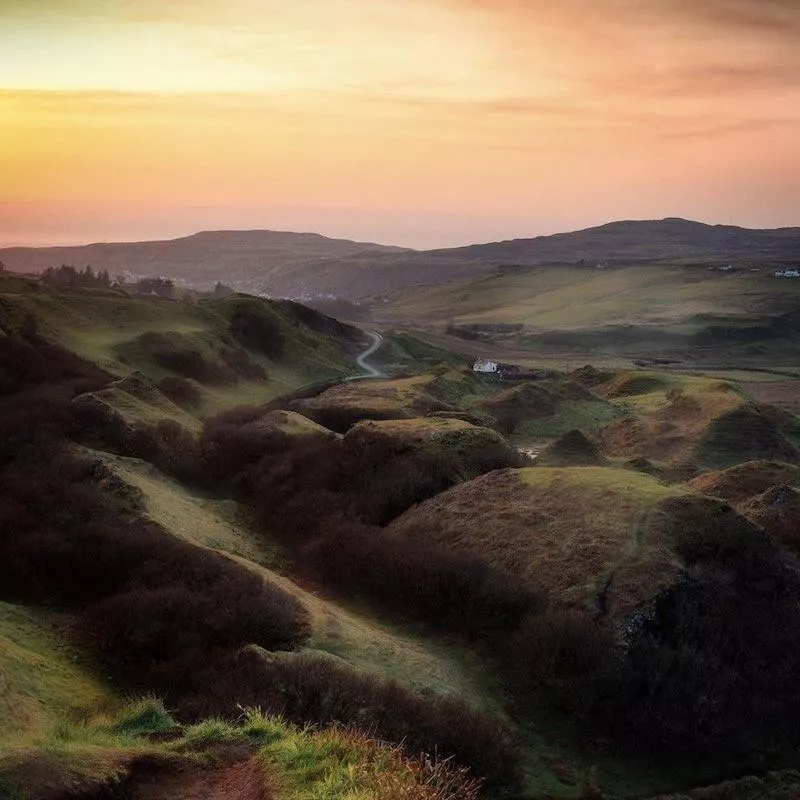 The Scottish Highlands are some of the prettiest green hills you’ll see, especially when taking in the view of the Green Mile on the Isle of Skye.