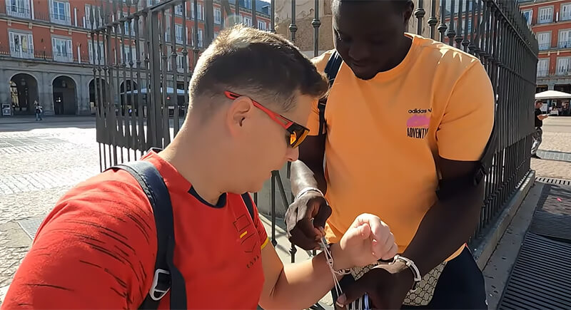 Someone might try to tie a string bracelet around your wrist before you’ve had time to react. They’ll say it’s free, a gift, a blessing, whatever sounds friendly enough to stop you. Once the bracelet is on, they’ll ask for money and won’t leave easily.