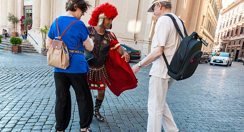 You might run into people dressed as Roman gladiators, Venetian opera singers, or costumed cartoon characters. Snap a photo with them, and they’ll demand a tip—often aggressively. In some cities, this can mean 10 or 20 euros for a single selfie.